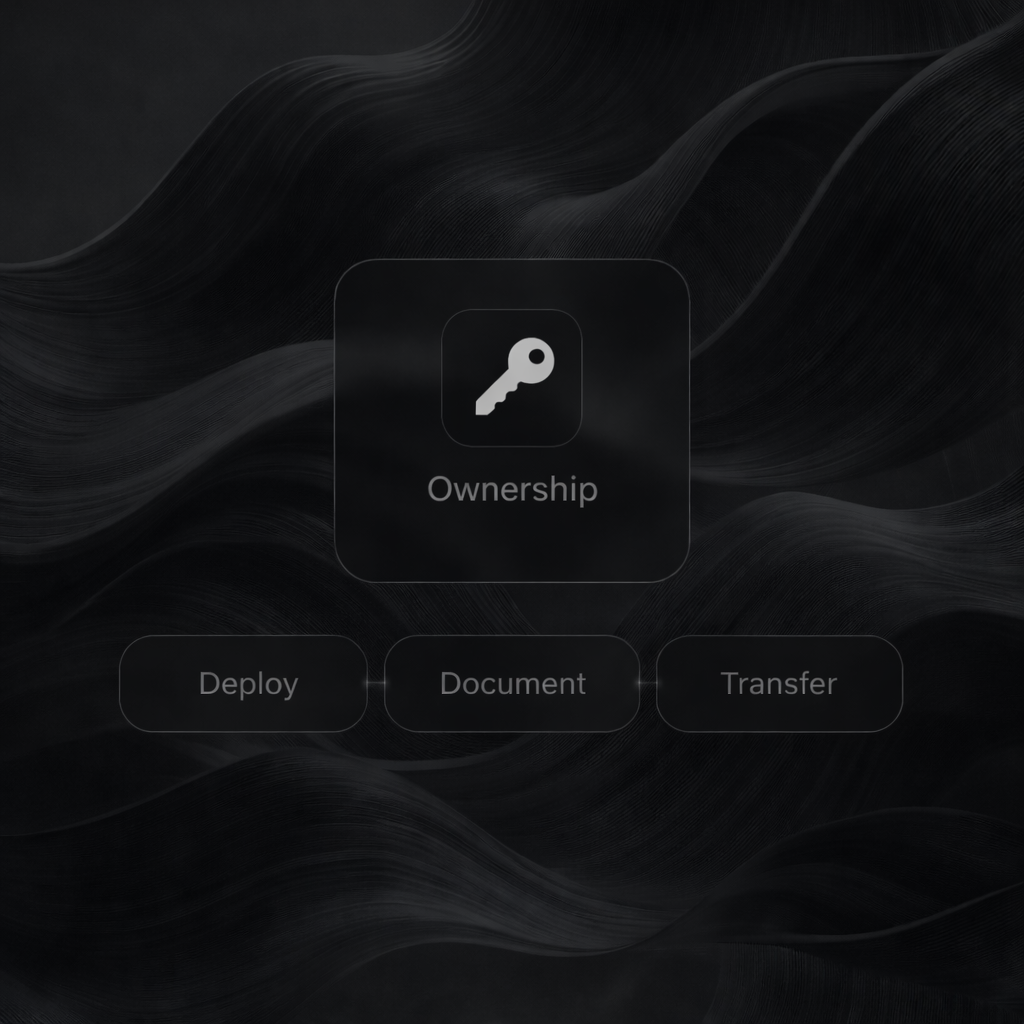 We launch in your environment, document everything, and hand over full control so your team can operate independently.